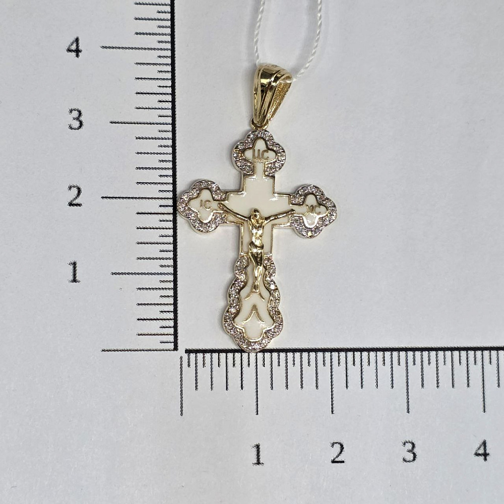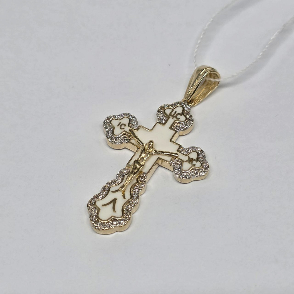 Золотая подвеска крест с бриллиантами и эмалью 0652000284800002